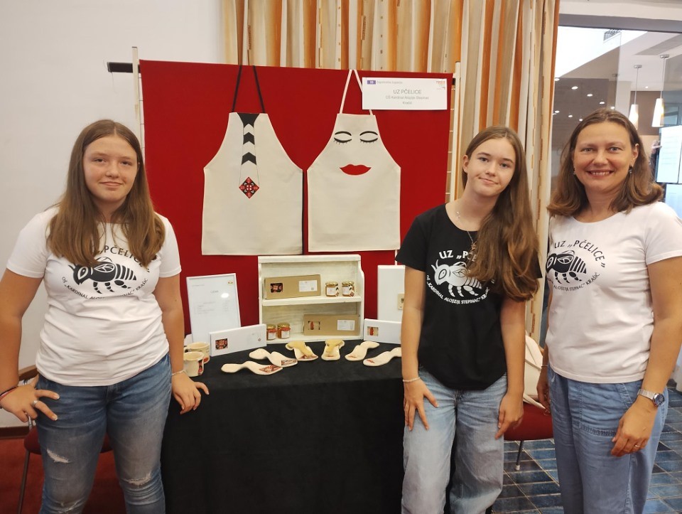 Učenice Jasmina Miletić i Lea Žalac iz 7. b razreda, pod vodstvom učiteljice Martine Štengl Šoić, predstavljale su našu učeničku zadrugu Pčelice na 37. smotri učeničkih zadruga Republike Hrvatske održanoj u Poreču. Na našem izložbenom štandu predstavili smo uporabne kuhinjske proizvode – pregače, podmetače za kuhače, šalice i med. Ove godine na smotri je sudjelovalo 60 učeničkih zadruga iz svih krajeva Hrvatske, a među gostima su bile i škole iz Srbije, Rumunjske i Crne Gore.