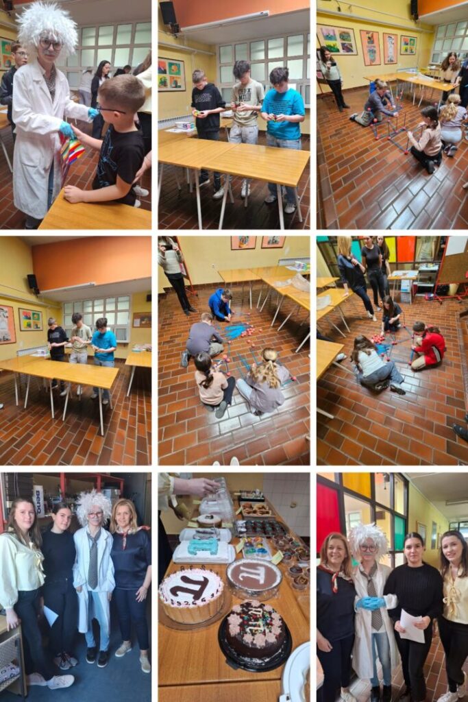 Učenici su se natjecali u raznim aktivnostima na temu matematike i broja  π  kao što su : zapisati  što više riječi na slog PI ( vrijeme 3min,14 sek), izrada narukvice – boje broja π, izrada simbola broja π (uz glazbu, na jednoj nozi u zraku), složiti Rubikovu kocku, složiti geometrijsko tijelo, zapamtiti što više znamenki broja π , matematički kviz i zanimljivosti o broju π  – Bomba.