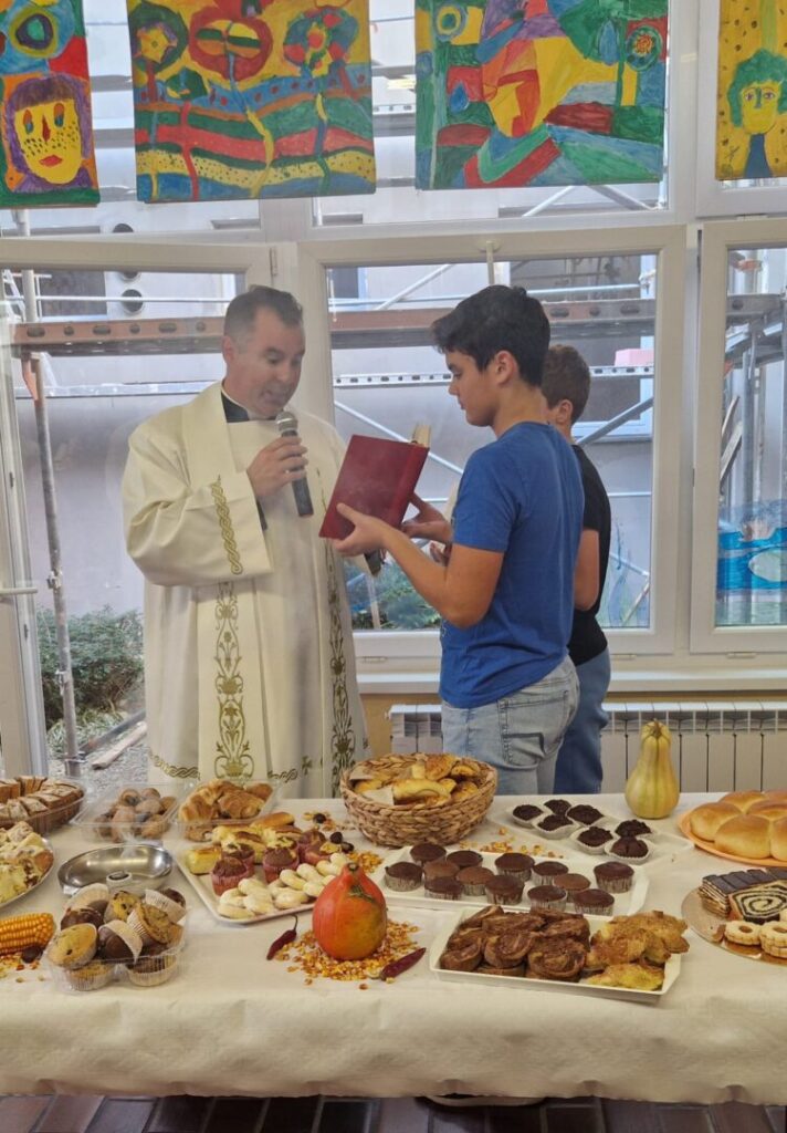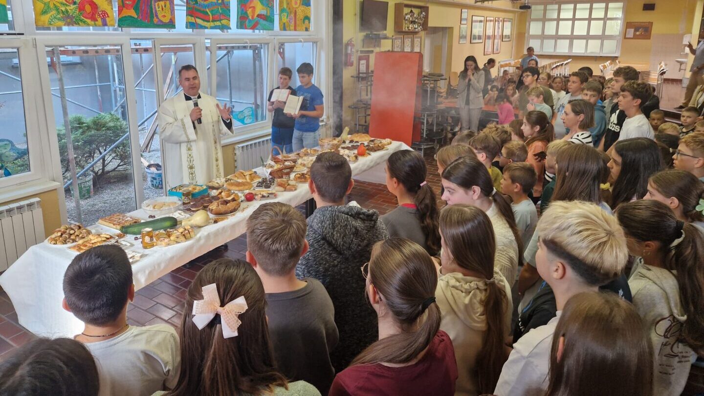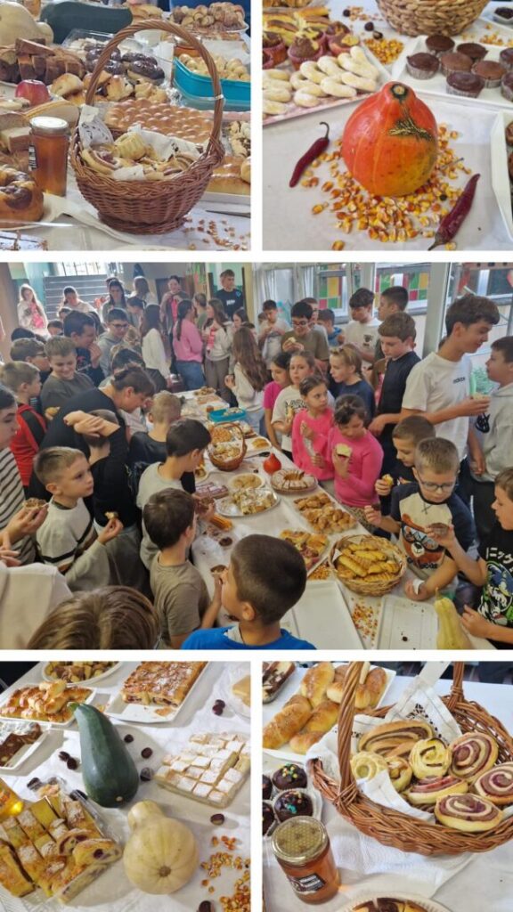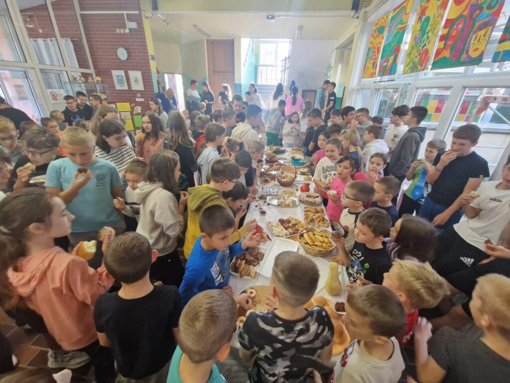 U četvrtak, 16. listopada 2025. u našoj matičnoj školi svečano je obilježen Dan kruha i zahvalnosti za plodove zemlje, dan posvećen zahvalnosti za plodove rada i darove prirode koje svakodnevno uživamo. Vrijedne ruke učenika predmetne nastave, uz nesebičnu pomoć njihovih roditelja, pripremile su razna peciva, kruh i kolače koje su ponosno izložili na bogato ukrašenim stolovima u školskom holu. Mirisi domaćih delicija ispunili su školu i stvorili toplo, svečano ozračje. Za glazbeni dio programa pobrinula se učiteljica glazbene kulture Magdalena Poljančić, koja je sa školskim zborom uvježbala pjesme „Kruh ljubavi“ i „Mamica su štrukle pekli“, čime je dodatno obogatila ovu lijepu svečanost. Na blagoslov hrane i zahvalu Bogu za plodove zemlje došao je i krašićki župnik, koji je izrekao molitvu i blagoslovio sve prisutne darove.