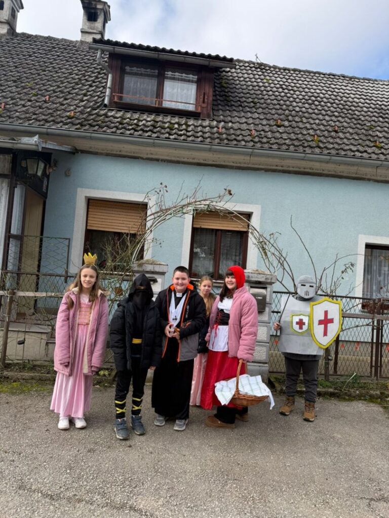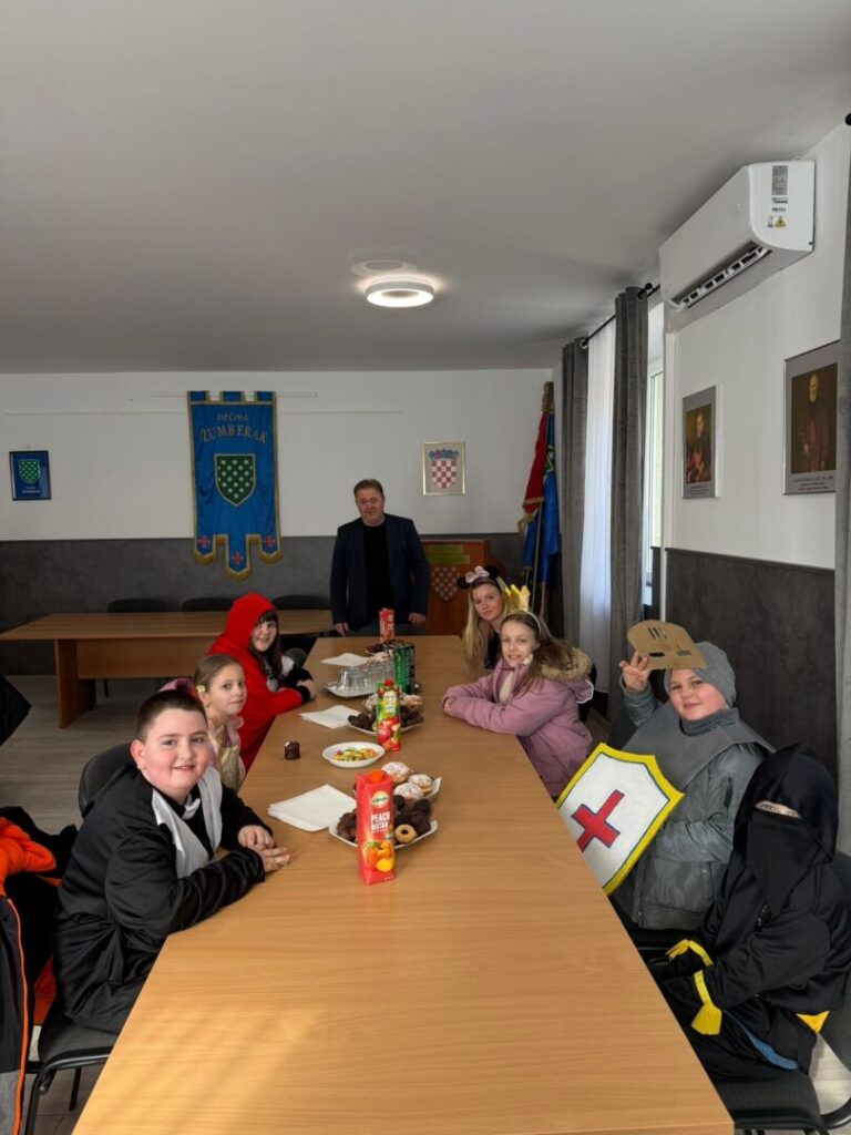 Nakon plesa pod maskama, veselu smo atmosferu nastavili i izvan škole uputivši se u posjet načelniku Općine Žumberak. Na putu do općine doživjeli smo posebno dirljive trenutke: mještani su izlazili iz svojih kuća, srdačno nas pozdravljali i s osmijehom pratili našu povorku. Načelnik nas je srdačno primio, a susret je protekao u ugodnom razgovoru o važnosti lokalne zajednice i njezinoj ulozi u svakodnevnom životu.