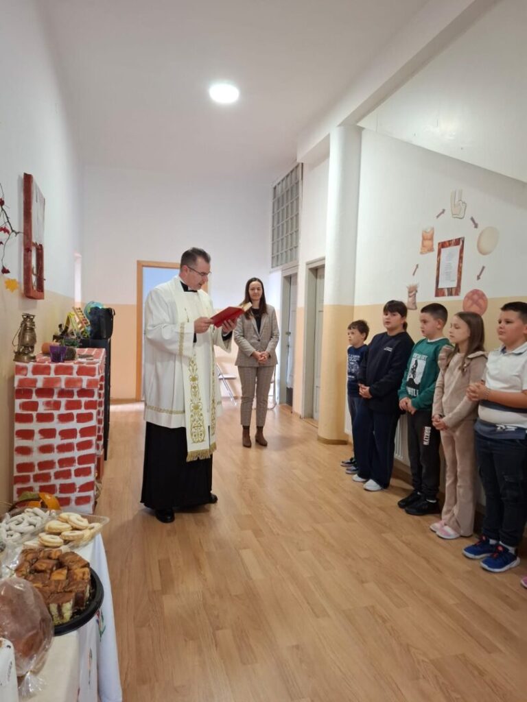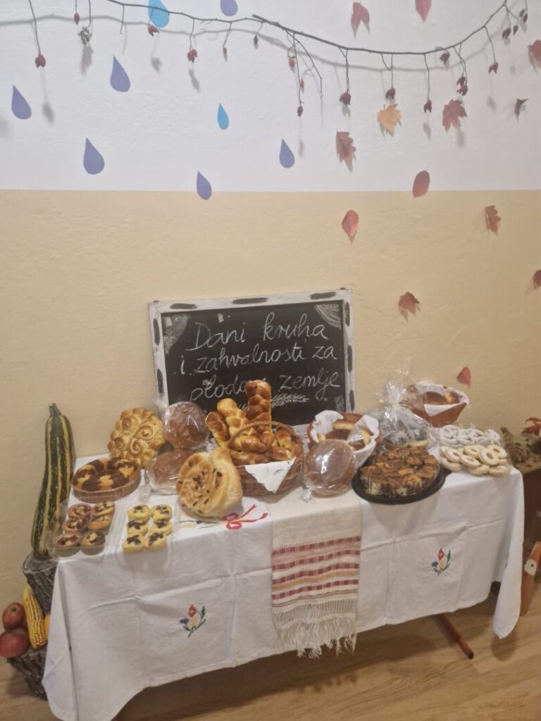 Svečano smo obilježili Dane kruha i zahvalnosti za plodove zemlje. U školskom smo hodniku pripremili stol s kruhom, pecivima, kolačima i plodovima prirode koje su djeca donijela od kuće. Naš je stol blagoslovio velečasni Ivan Vučak, a u molitvi i pjesmi zahvalili smo Bogu na svemu što nam daje.
