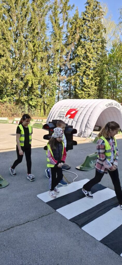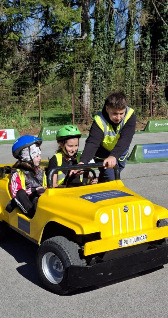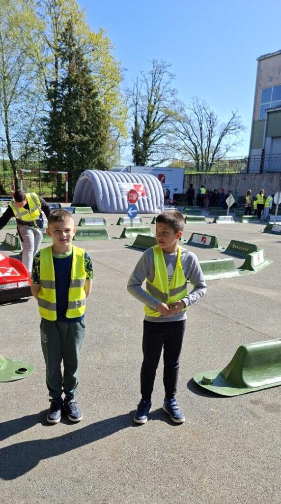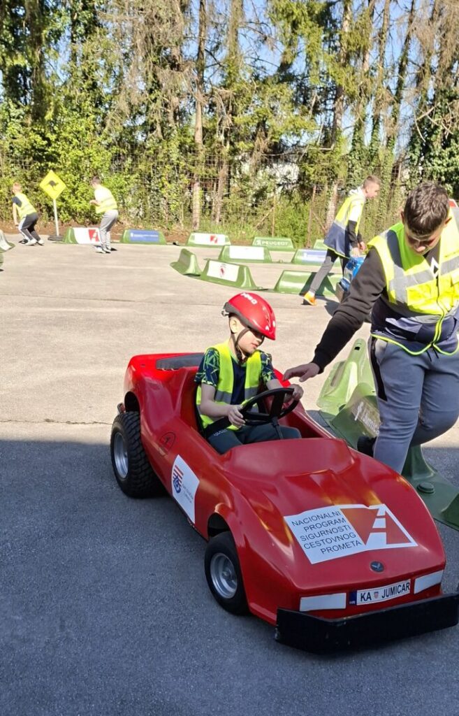 Ovo je učenicima bio svakako najuzbudljiviji dio programa – praktična nastava na otvorenom. Na školskom igralištu postavljen je veliki mobilni prometni poligon, gdje su mali sudionici imali priliku okušati se u ulozi vozača i u stvarnim situacijama primijeniti stečeno znanje. Vozeći i snalazeći se u simuliranim prometnim uvjetima, dodatno su učili kako postati pažljiviji i odgovorniji sudionici u prometu.