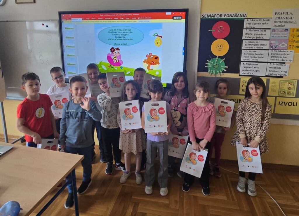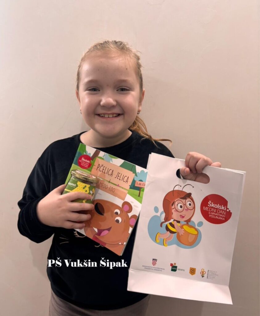 Uz staklenke meda, prvašići su u poklon paketu dobili i edukativnu slikovnicu „Pčelica Jelica i medo Edo“, a učiteljice su se pobrinule da kroz zanimljivu prezentaciju „Priče s cvjetne livade“ učenici nauče koliko su pčele važne za naš planet i zašto je med pravi dar prirode.