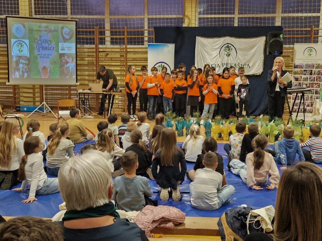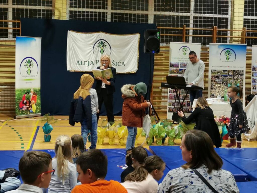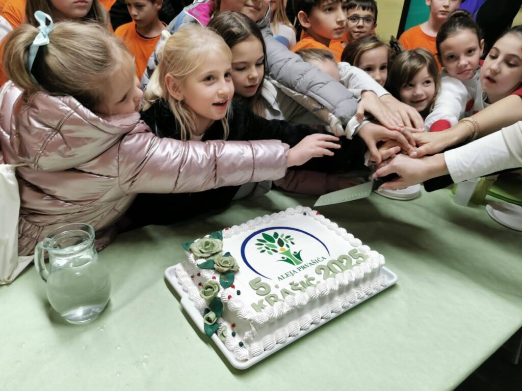 U petak, 28. studenoga 2025. godine, u našoj školi održano je svečano podizanje pete Aleje prvašića u sklopu istoimenog projekta autorice Snježane Agostini. Ove godine generacija prvašića iz matične i područnih škola, zajedno sa svojim učiteljicama, nastavila je projekt započet školske godine 2021./2022. Posadili su tri nova stabla u svojoj aleji i sudjelovali u svečanom otkrivanju ploča s vlastitim imenima.