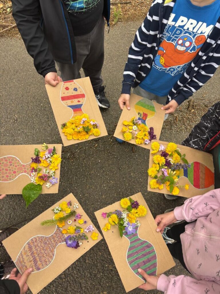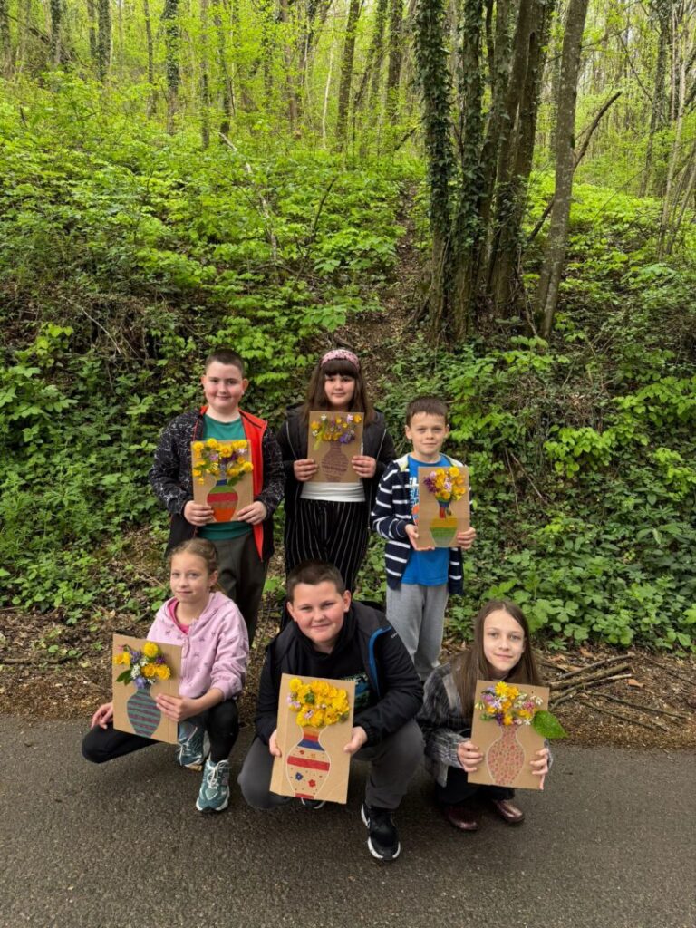 Svoj doživljaj proljeća učenici su izrazili i kroz kreativni rad izrađujući proljetne bukete. Kroz karton, s nacrtanom vazom, provlačili su ubrano cvijeće i stvarali maštovite proljetne aranžmane. Aktivnosti smo upotpunili slušanjem i oponašanjem zvukova ptica.